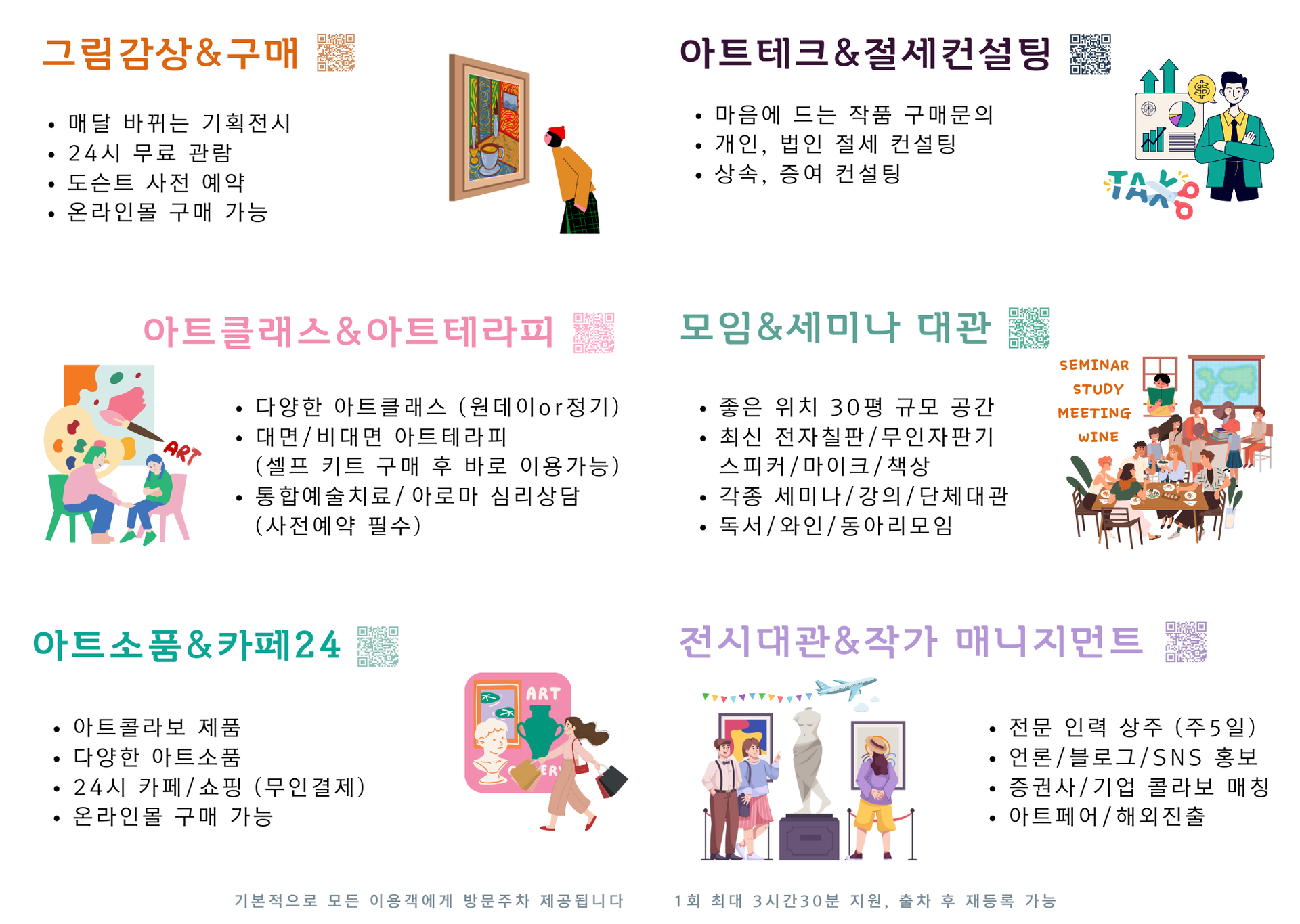 갤러리몸은 메타갤러리몸이라는 가상공간에서의 갤러리도 보유하여 아바타관장의 소개로 다양한 작품을 온라인에서도 관람이 가능합니다. 24시간 개방되어 언제든 멋진 작품과 함께 커피를 마시며 이야기를 나눌 수 있는 고품격공간 서비스를 제공드립니다.