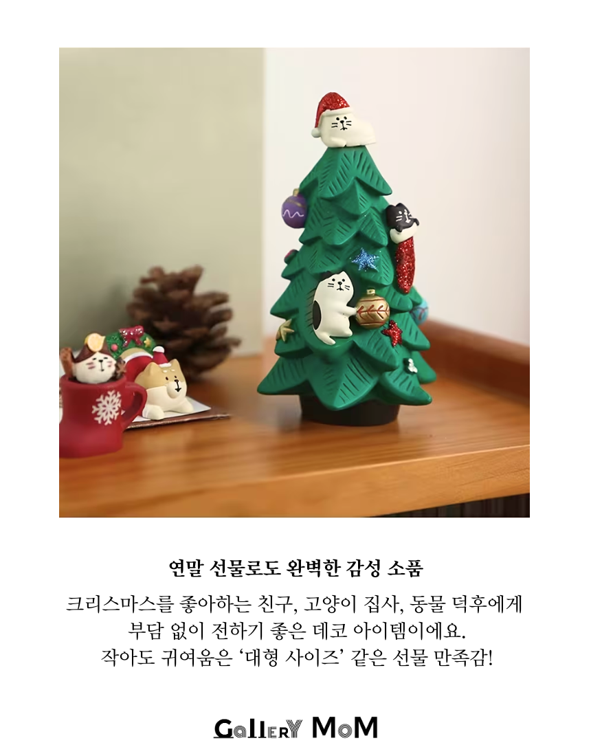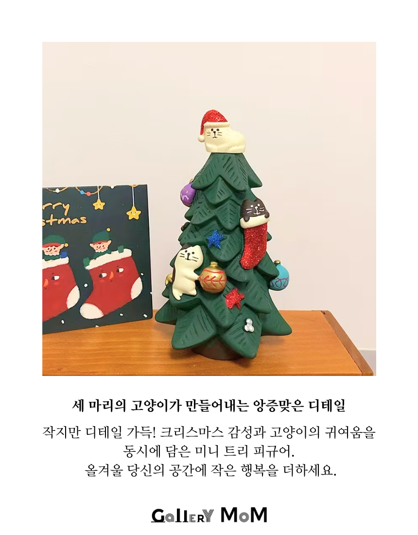 트리 장식, 고양이 표정, 오너먼트까지 디테일이 섬세하게 조형되어 있어
