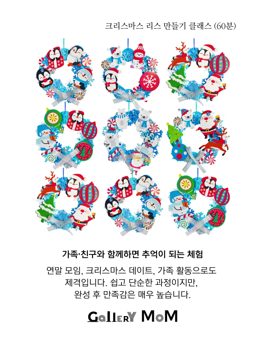 누구나 60분 안에 완성할 수 있는, 쉽고 즐거운 겨울 시즌 체험입니다.