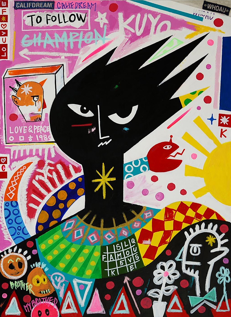 KUYO / LOVE & PEACE / 2023 / 90.9 X 72.7 cm / 아크릴 + 오일 스틱