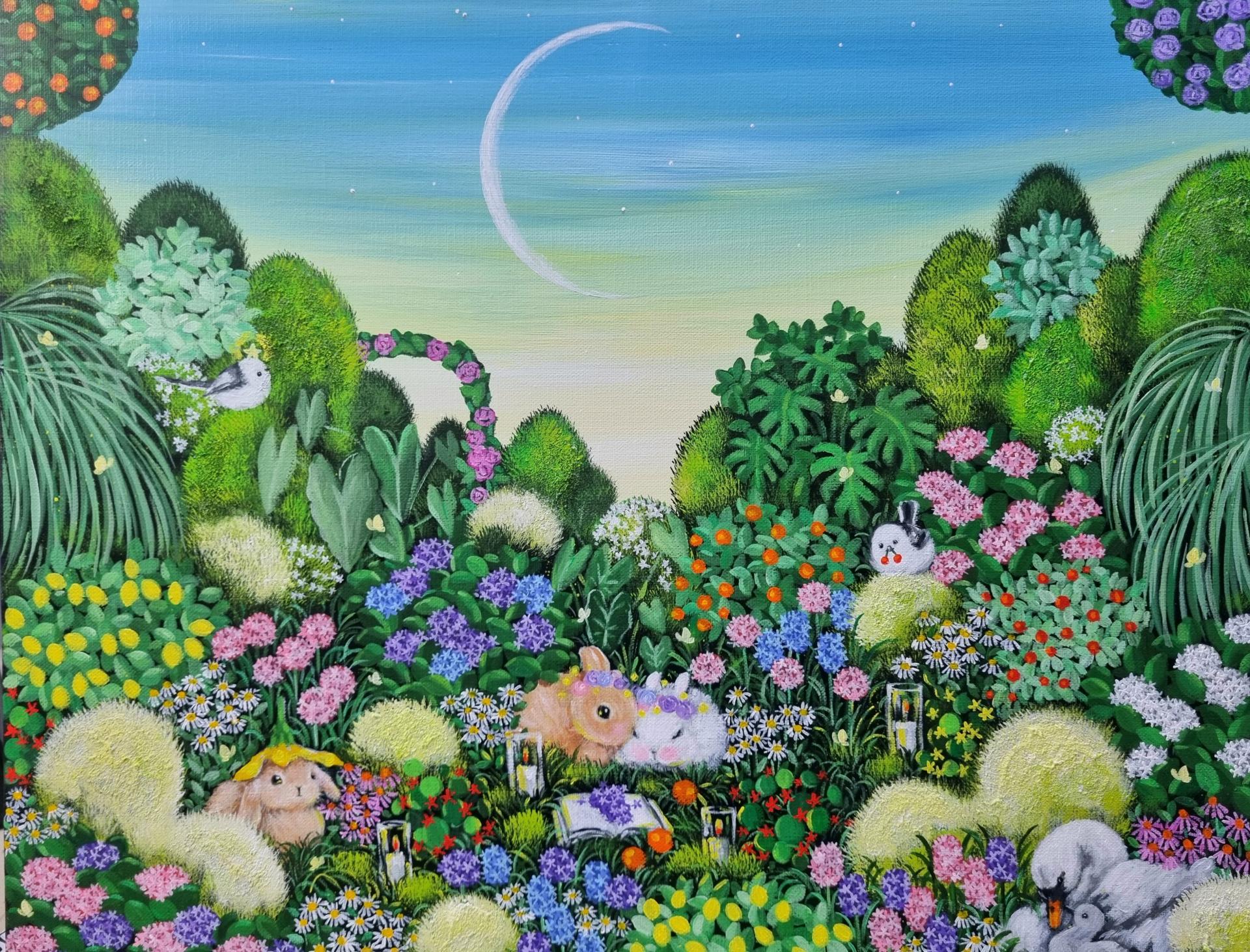 a warm garden day 53cm 40.9cm acrylic on canvas 2024