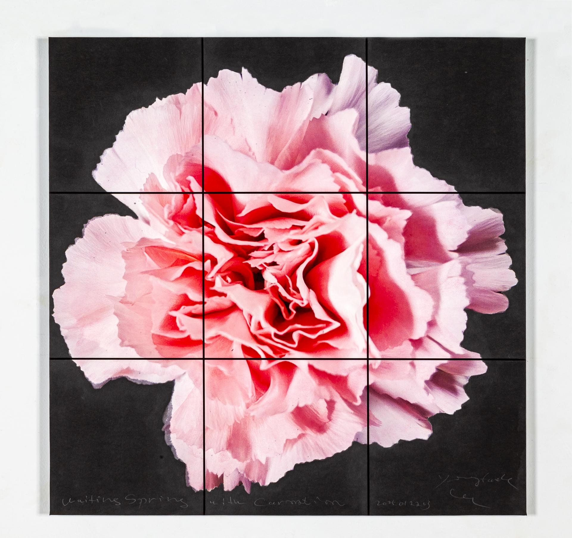이용택 Waiting spring with carnation 2025012703 mixed medium on Korean paper 70x70cm 2025