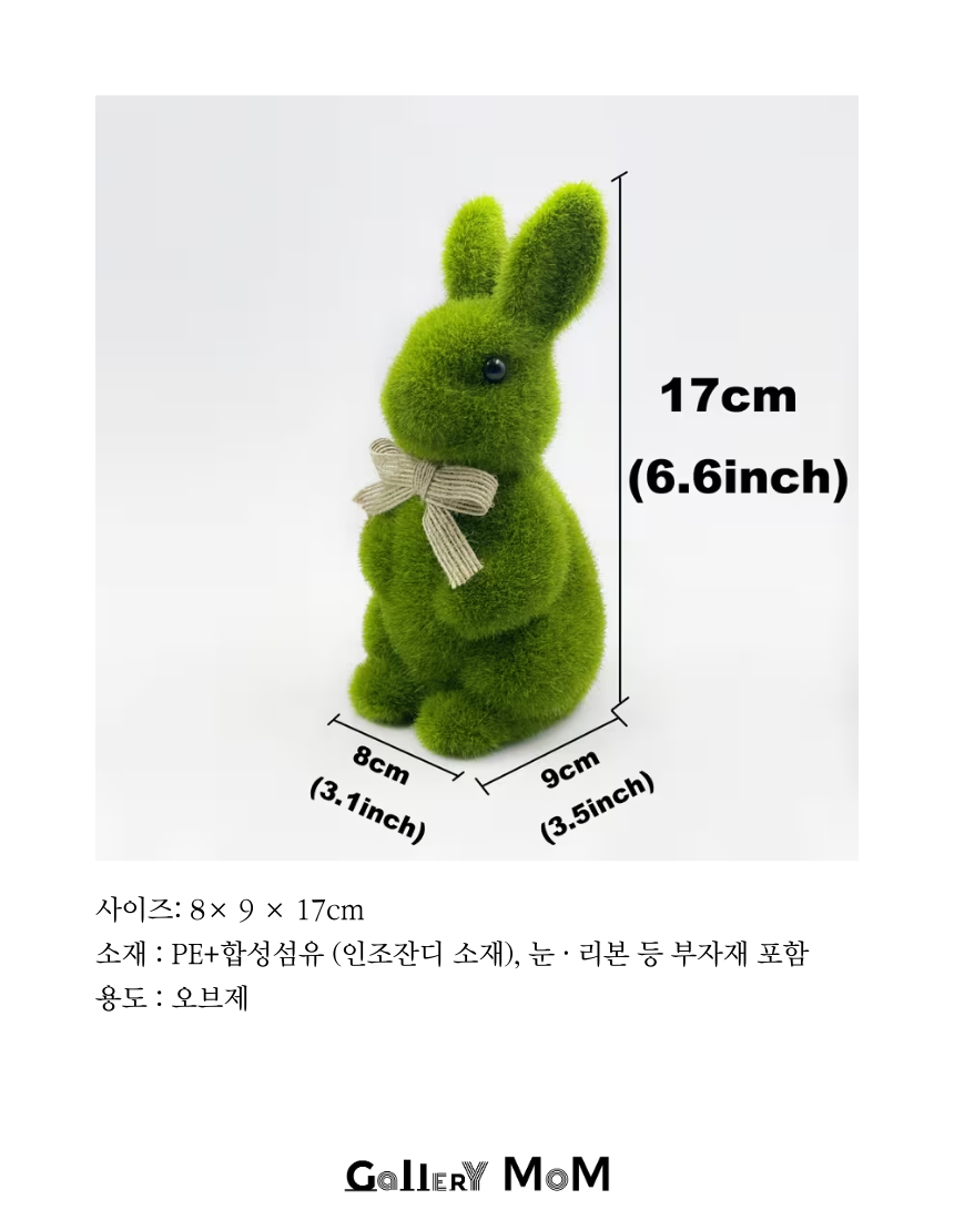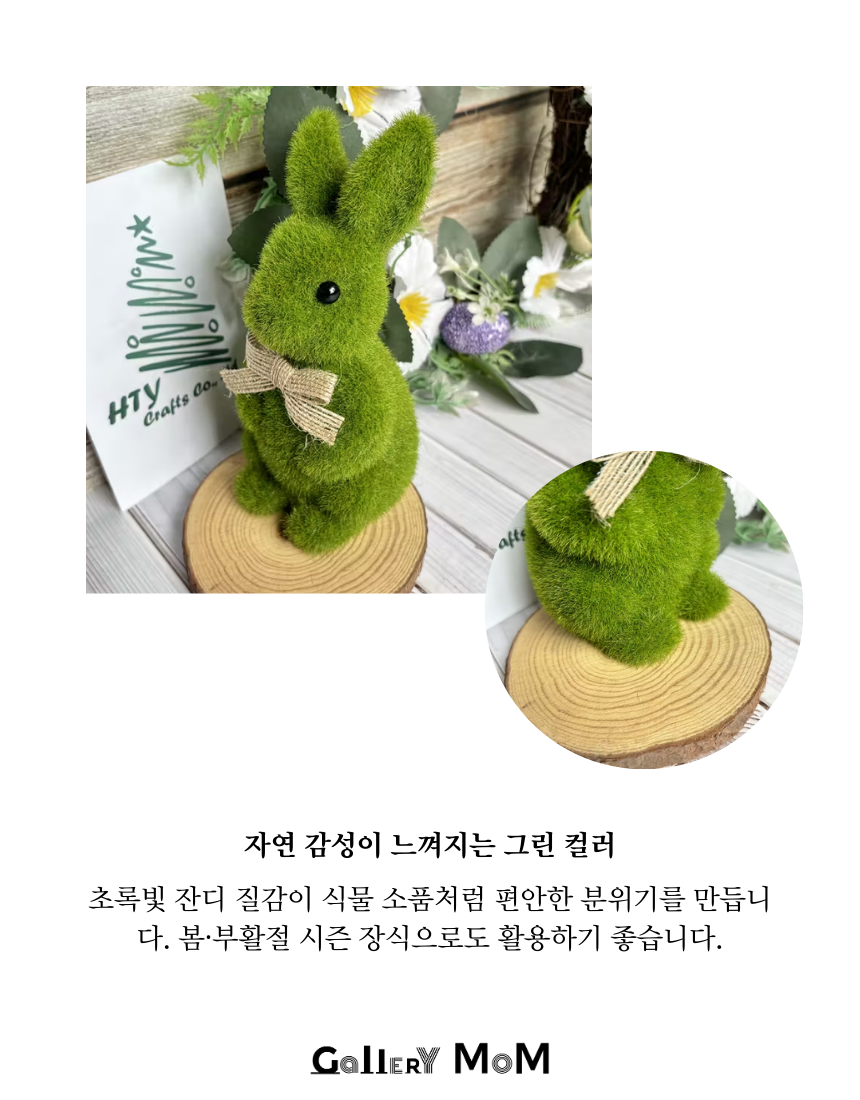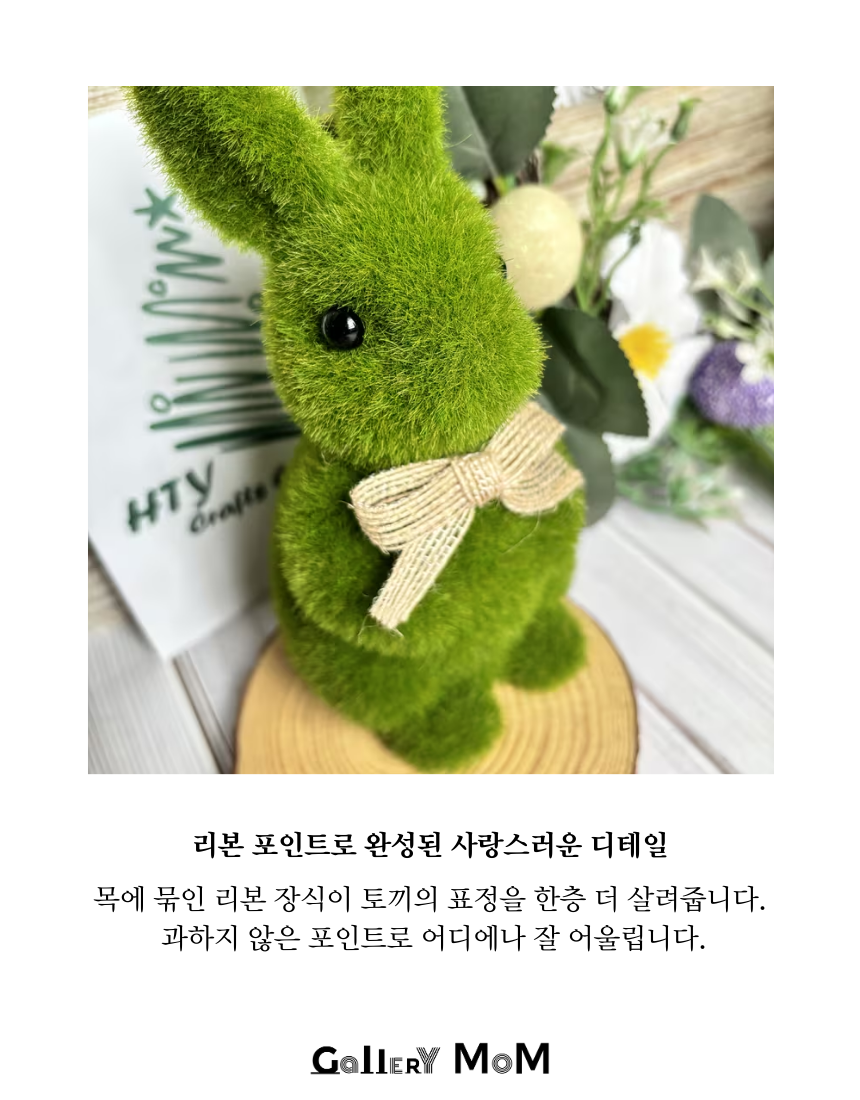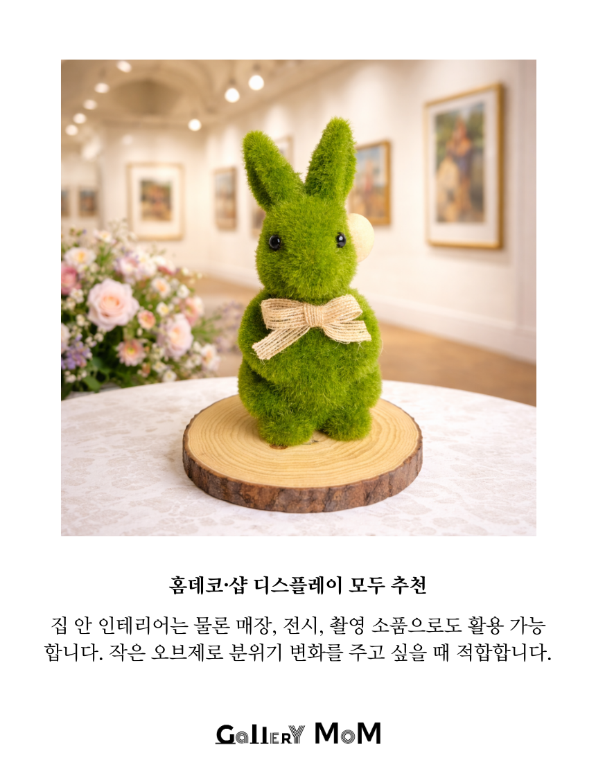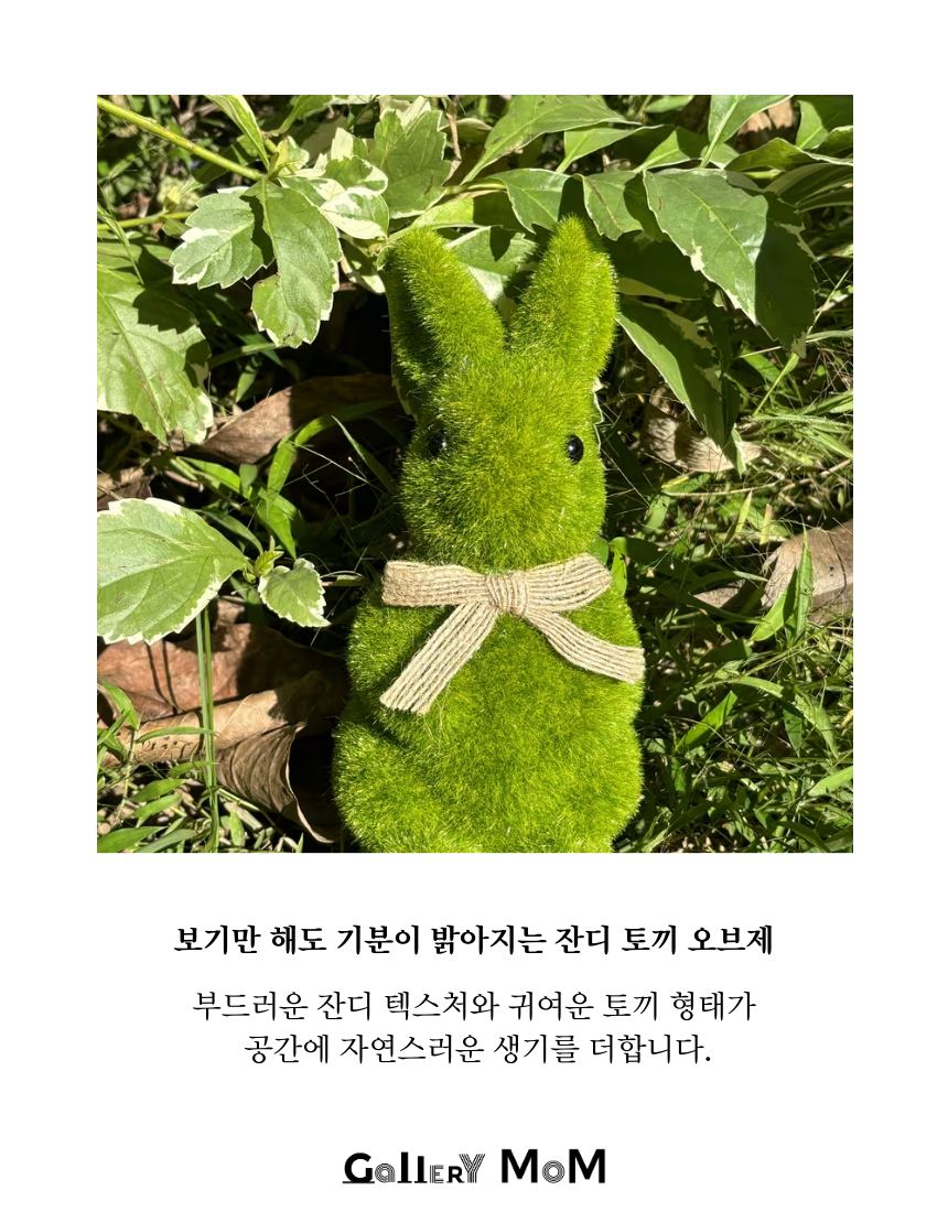 부드러운 잔디 텍스처로 덮인 이 리본 토끼 오브제는 자연의 생기를 담아,