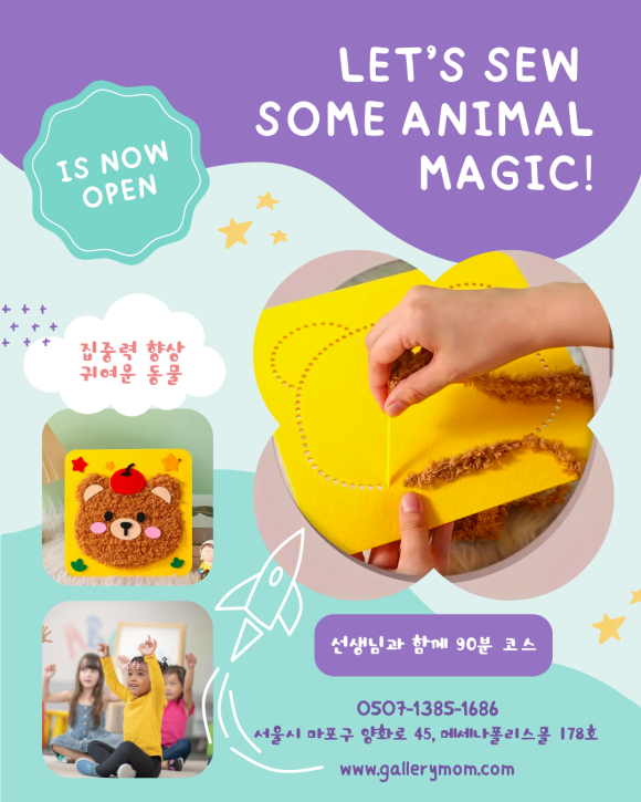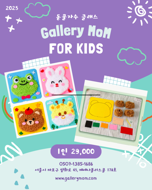 아이들이 직접 자수를 놓으며 창의력과 집중력을 키우는 키즈 동물 자수 클래스가 열립니다.