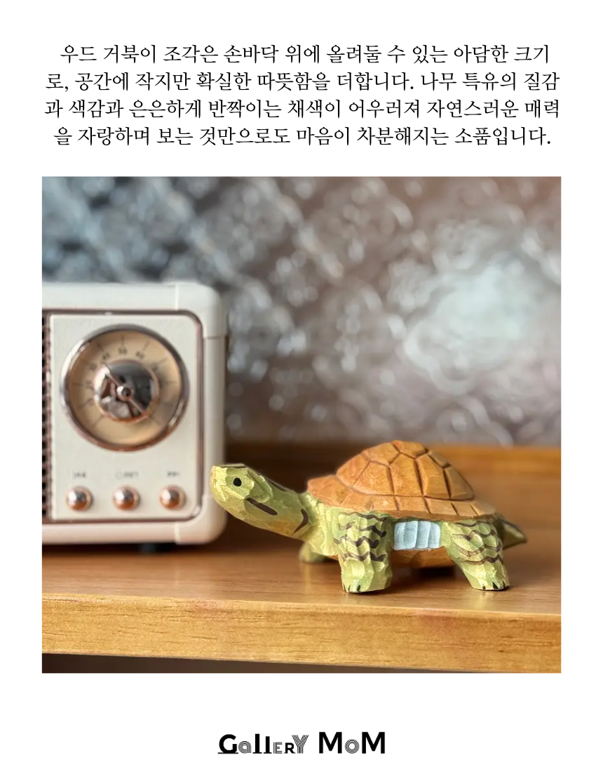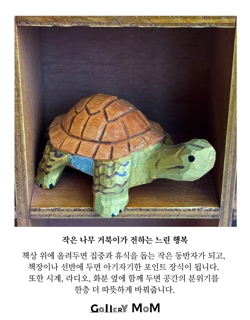 작은 나무 거북이를 들여놓는 순간, 공간이 한층 더 포근해집니다.