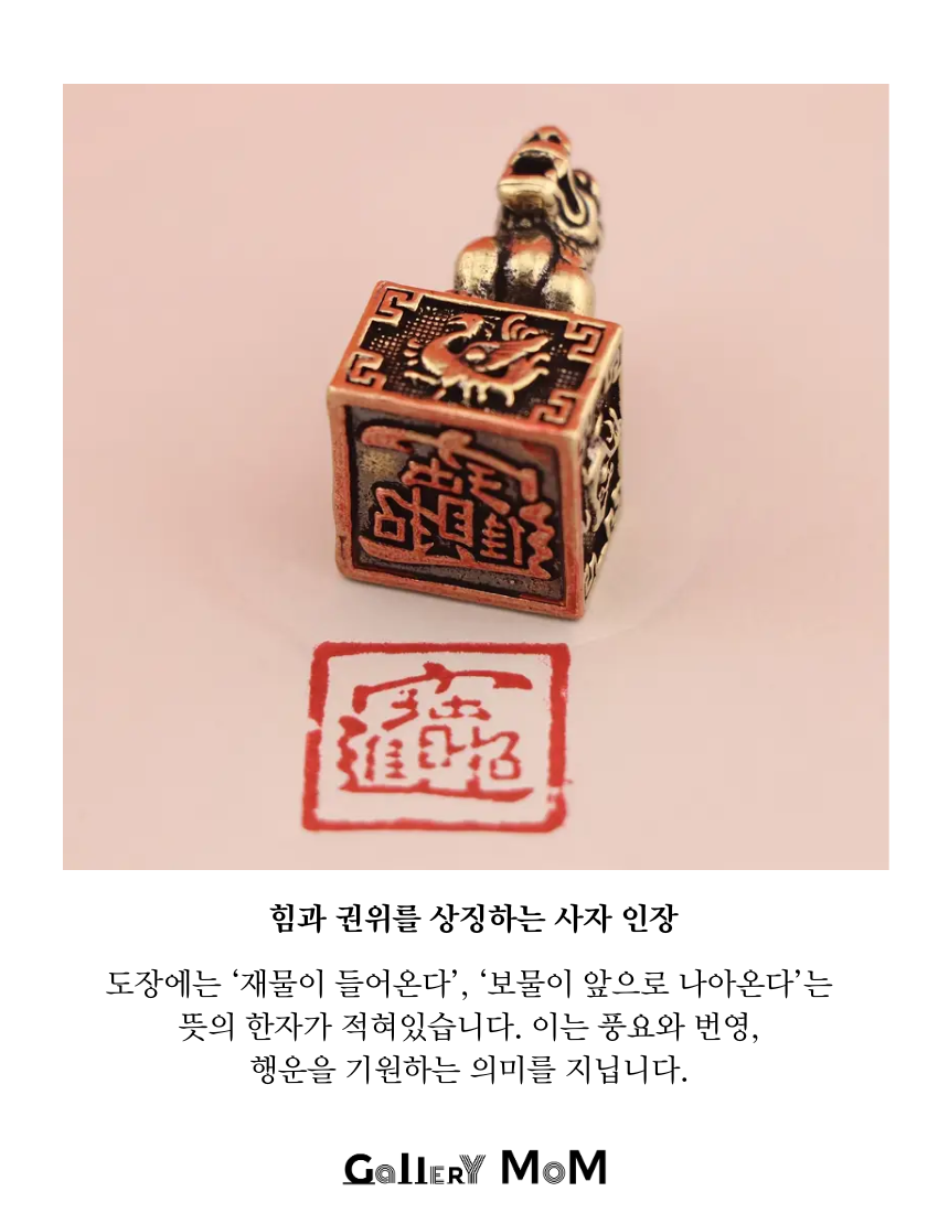권위와 수호, 풍요와 번영의 상징을 담은 특별한 오브제입니다.