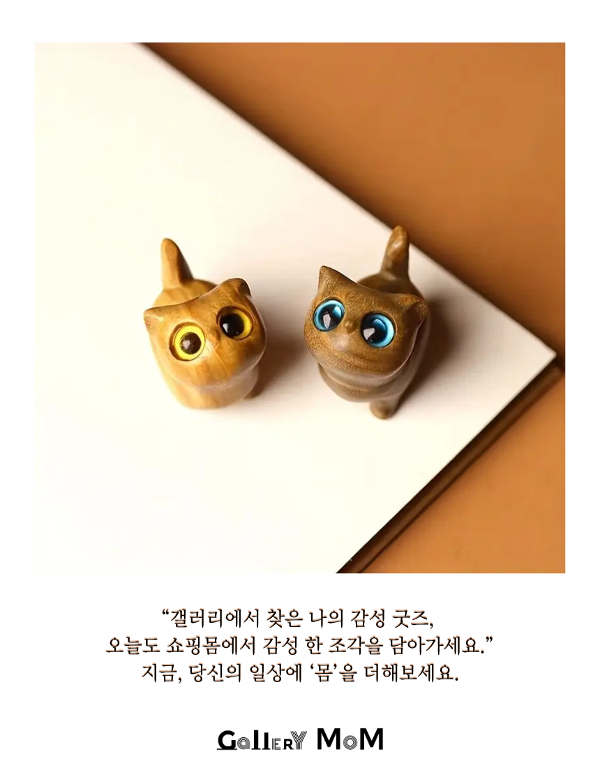갤러리 감성을 담은 쇼핑몸 우드 수공예 고양이 3ps는