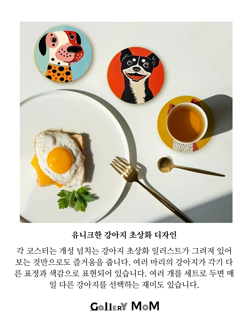 귀여운 강아지 일러스트가 담긴 유니크한 티코스터