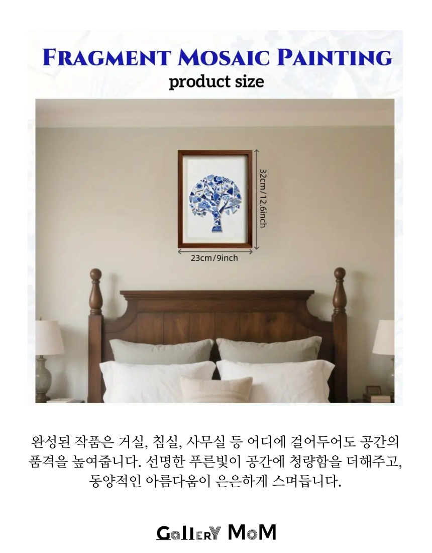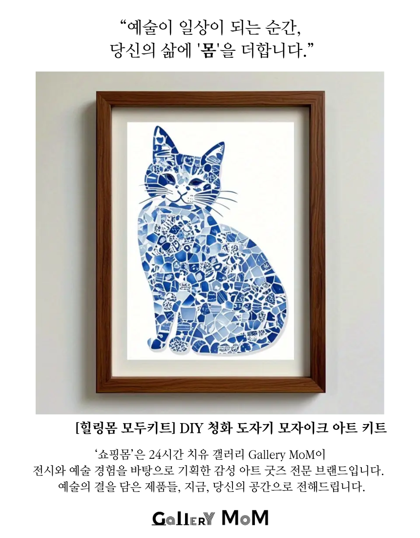 갤러리 감성을 담은 DIY 청화 도자기 모자이크 아트 키트는 직접 만드는 즐거움과 완성된 작품의 감동을 동시에 선사합니다. 블루&화이트 컬러가 어우러진 동양적 감각의 도자기 조각을 활용해, 우아한 홈 데코 액자를 직접 완성할 수 있습니다.