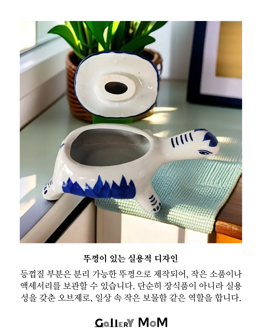 - 상품명: 쇼핑몸 블루 & 화이트 세라믹 거북이 보관함 (뚜껑 포함)
