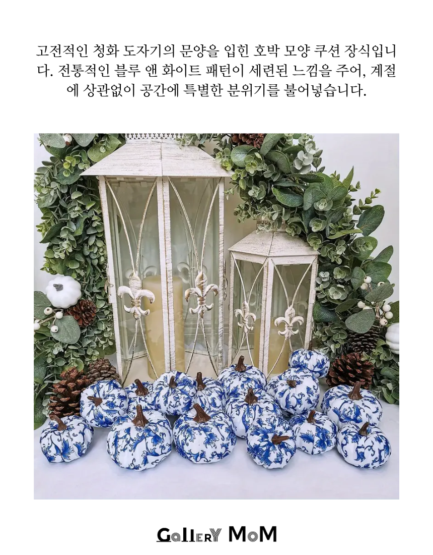 - 상품명: 쇼핑몸 블루 & 화이트 호박 쿠션 장식