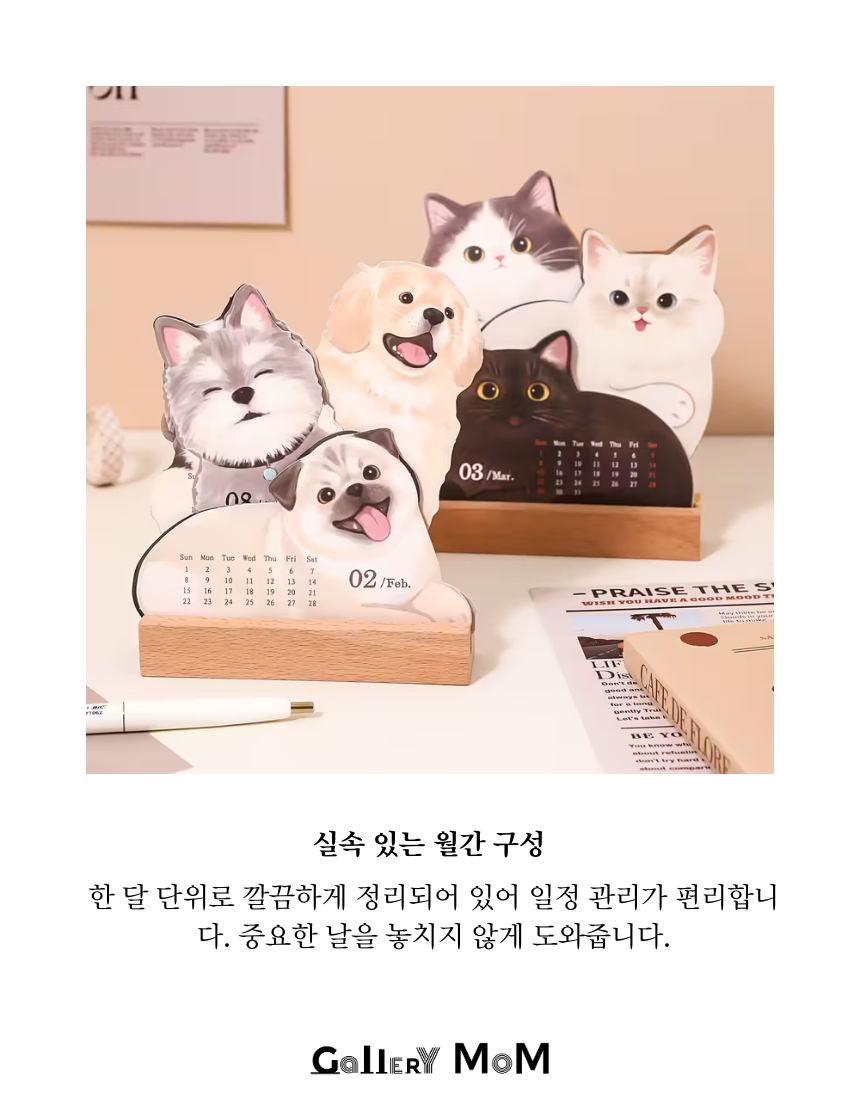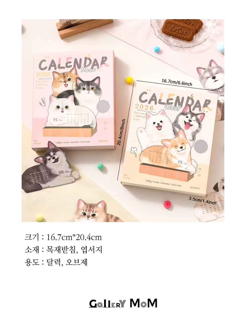 갤러리몸 쇼핑몸에서 선보이는 2026년 데스크 캘린더는 귀여운 반려동물 일러스트와 실용적인 월간 플래너 구성이 만난 특별한 데스크 아이템입니다.